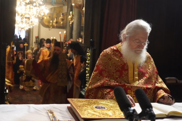 Ο Αρχιγραμματέας της Αγίας και Ιεράς Συνόδου, Πανοσιολ. Αρχιμανδρίτης κ. Βοσπόριος, ανέγνωσε την Πατριαρχική Απόδειξη για την εορτή των Χριστουγέννων.