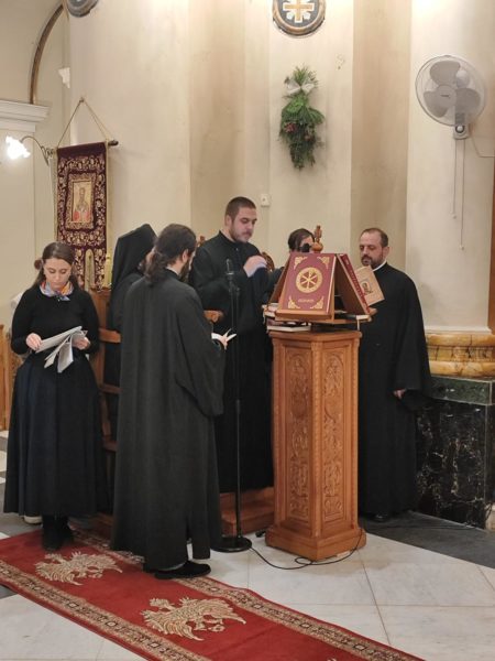 Για ποιμαντικούς λόγους, οι λατρευτικές συνάξεις τελέσθηκαν το Σάββατο 7 και Κυριακή 8 Δεκεμβρίου, προεξάρχοντος τουΣεβ. Μητροπολίτη Κρήνης κ. Κυρίλλου, ΠατριαρχικούΕξάρχου Μελίτης, πλαισιούμενος από τους Ιερείς της Ιεράς Εξαρχίας, π. Νικόλαο Gongadze και π. Ανδρέα Kravchenko και με την συμμετοχή πλήθος Ελλήνων και Ουκρανών Ορθοδόξων, αλλά και Ορθοδόξων άλλων Εθνικοτήτων.