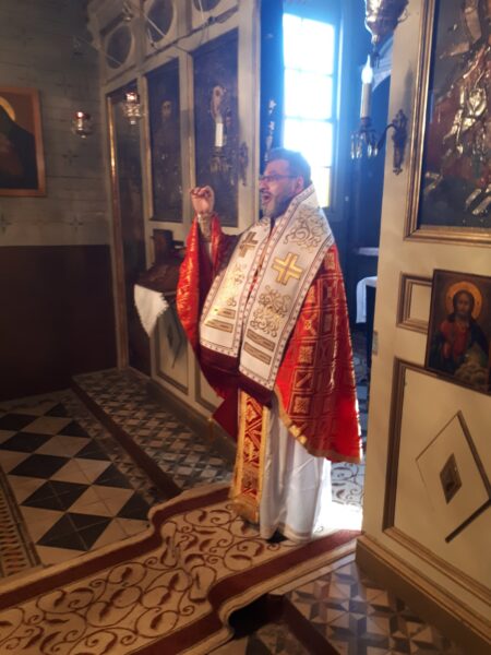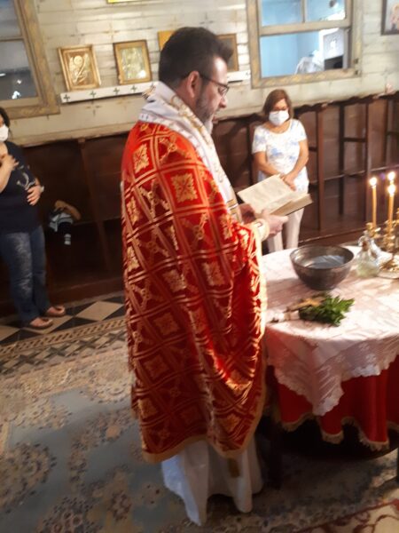Μετά το πέρας της Λειτουργίας τελέστηκε η ακολουθία του Αγιασμού για την έναρξη του νέου μήνα. Εκκλησιάστηκαν πιστοί από το νησί και την Πόλη, τηρουμένων των μέτρων προστασίας της δημόσιας υγείας.