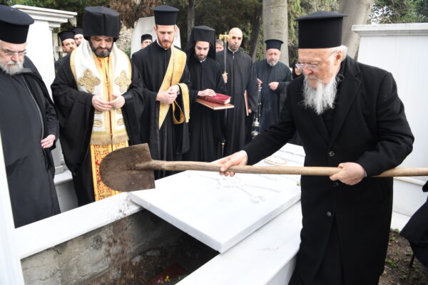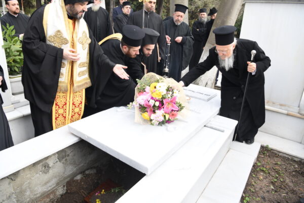 Ο μακαριστός Μητροπολίτης Σταυρουπόλεως, ο οποίος εκοιμήθη το 1991, είχε ενταφιαστει αρχικώς στην Αθήνα, από όπου, με πρωτοβουλία του Παναγιωτάτου, μεταφέρθηκαν, προσφάτως, τα λείψανά του προκειμένου να ταφούν οριστικώς στην Πόλη. “Και αυτό συμβαίνει”, σημείωσε ο Παναγιώτατος, στην ομιλία του, ύστερα από το Τρισάγιο, “μετά τον επαναπατρισμόν και τον εδώ ενταφιασμόν του προηγουμένου Σχολάρχου, και ιδικού μου πρώτου Σχολάρχου εις την Χάλκην, του Ικονίου Ιακώβου, και εν συνεχεία του προκατόχου μου Πατριάρχου Κωνσταντίνου Στ’, ο οποίος απελάθη από τας Τουρκικάς Αρχάς, και εξεμέτρησε το ζην εις τας Αθήνας όπου και ενεταφιάσθη και πολλά χρόνια αργότερα αξιωθήκαμε να τον μεταφέρουμε εδώ και να τον ενταφιάσουμε μαζί με τους άλλους Οικουμενικούς Πατριάρχας εις την ιστορικήν αυτήν Μονήν των πατέρων μας”.