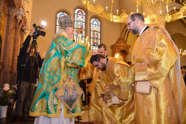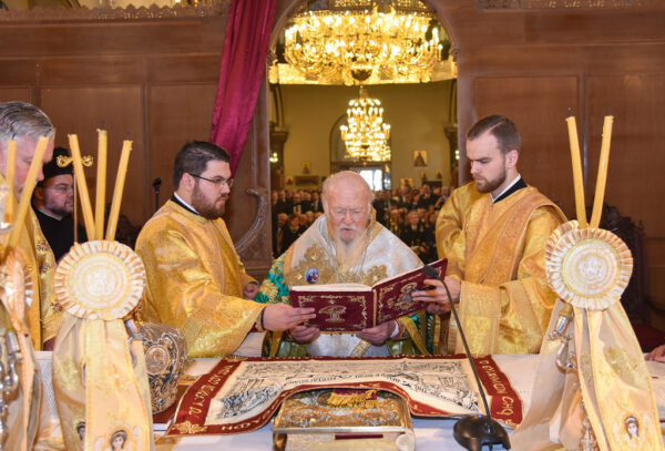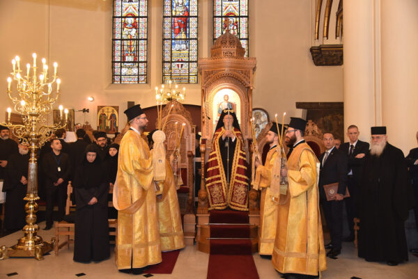 Πατριαρχική Θεία Λειτουργία τελέστηκε την Κυριακή 10 Νοεμβρίου 2019 στον Ιερό Μητροπολιτικό Ναό των Παμμεγίστων Ταξιαρχών Βρυξελλών, προεξαρχούσης της Α.Θ.Π. του Οικουμενικού Πατριάρχου κ. κ. Βαρθολομαίου, με συλλειτουργούς τον Σεβασμιώτατο Μητροπολίτη Βελγίου και Έξαρχο Κάτω Χωρών και Λουξεμβούργου κ. Αθηναγόρα, τους Σεβασμιωτάτους Μητροπολίτες Μαντινείας και Κυνουρίας κ. Αλέξανδρο, Προικονήσσου κ. Ιωσήφ, Κυδωνίας και Αποκωρώνου κ. Δαμασκηνός, Ελβετίας κ. Μάξιμος, οι Πανιερώτατοι Μητροπολίτης Αχαϊας κ. Αθανάσιος και Αρχιεπίσκοπος Τελμησού Ιώβ, οι Θεοφιλέστατοι Επίσκοποι Δοσίθεος του Πατριαρχείου Γεωργίας, Λεύκης κ. Ευμένιος, Μάρκος του Πατριαρχείου Ρουμανίας και Νεαπόλεως Πορφύριος της Εκκλησίας της Κύπρου.