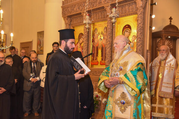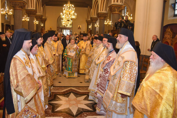 “Ἐν κατανύξει καί χαρᾷ, ὑμνοῦντες καί δοξολογοῦντες τόν Θεόν τῶν θαυμασίων διά τά σωτηριώδη δωρήματα Αὐτοῦ, τιμῶμεν σήμερον, συνηγμένοι ἐπί τό αὐτό ἐν εὐχαριστιακῇ συνάξει εἰς τόν περικαλλῆ Ἱερόν Μητροπολιτικόν Ναόν Παμμεγίστων Ταξιαρχῶν Βρυξελλῶν, τήν συμπλήρωσιν πεντηκονταετίας ἀπό τῆς ἱδρύσεως τῆς Ἱερᾶς Μητροπόλεως Βελγίου. Κατά τήν ἱεράν ταύτην στιγμήν, μνημονεύομεν τοῦ ὀνόματος τῶν μακαριστῶν ἀδελφῶν, τοῦ πρώτου μητροπολίτου τῆς θεοτηρήτου ταύτης Ἐπαρχίας τοῦ Οἰκουμενικοῦ Θρόνου, Αἰμιλιανοῦ Ζαχαροπούλου καί τοῦ Ἐπισκόπου Εὐμενείας Μαξίμου Μαστίχη, οἱ ὁποῖοι πολλά προσέφερον εἰς τήν ἀνάπτυξιν τῆς Μητροπόλεως ταύτης. Εὐχόμεθα, ἐν ἑνί στόματι καί μιᾷ καρδίᾳ, εἰς τόν Ἱερώτατον ἀδελφόν Μητροπολίτην πρῴην Βελγίου κύριον Παντελεήμονα Κοντογιάννην, τόν ἄμεσον Προκάτοχον ὑμῶν, Σεβασμιώτατε ἀδελφέ, ὑγιείαν κατ᾿ ἄμφω καί μακροημέρευσιν, εὐχαριστοῦντες διά τήν πολύκαρπον καί πολυετῆ ἐνταῦθα ποιμαντορίαν του…Ὁ τρόπος μέ τόν ὁποῖον βλέπομεν τόν ἄνθρωπον καί τόν σκοπόν τῆς ζωῆς του, ὁρίζει καί τό πῶς συμπεριφερόμεθα πρός αὐτόν. Ἐάν θεωρῶμεν τόν ἄνθρωπον ὡς homme machine, εὐκόλως δύναται τό ἀνθρώπινον πρόσωπον νά μετατραπῇ εἰς ἀντικείμενον. Ἐάν βλέπωμεν τόν ἄνθρωπον ὡς πρόσωπον, κτισθέν κατ᾿ εἰκόνα καί καθ᾿ ὁμοίωσιν Θεοῦ, τότε ἡ στάσις μας εἶναι τελείως διαφορετική. Μία τοιαύτη θεώρησις ἀπορρίπτει τάς ἀντικειμενοποιήσεις τοῦ ἀνθρώπου ἐν ὀνόματι τῆς ἐπιστημονικῆς προόδου, τήν σύγχρονον ἀποθέωσιν τῶν ἀτομικῶν δικαιωμάτων καί τήν μετατροπήν τοῦ ἀνθρώπου εἰς ὄργανον τῆς οἰκονομίας (homo economicus). Ἡ Ὀρθόδοξος παράδοσις ὁρίζει τόν ἄνθρωπον ὡς «ζῶον θεούμενον», γεγονός τό ὁποῖον χαρίζει εἰς αὐτόν ὑψίστην ἀξίαν. Ἐν τῇ Ἐκκλησίᾳ καί ὡς Ἐκκλησία δέν εἴμεθα ἄθροισμα ἀτόμων, ἀλλά κοινωνία προσώπων, μέτοχοι τῆς «κοινῆς ἐλευθερίας». Ἡ ἰδία ἡ ζωή τῆς Ἐκκλησίας τοῦ Χριστοῦ εἶναι ἐλευθερία, εἶναι ἡ νίκη κατά τῶν δυνάμεων καί τῶν ἐξουσιῶν τοῦ κόσμου τούτου, ἐναντίον τοῦ κράτους τοῦ θανάτου, ἐναντίον τοῦ Ἔχειν καί τῆς αὐτοδικαιώσεως, κατά τῶν «ἀφρόνων πλουσίων» καί τῶν «αὐτοδικαιουμένων Φαρισαίων». Ἡ Ἐκκλησία εἶναι ἡ βεβαίωσις καί ἡ βεβαιότης ὅτι τό κακόν «δέν ἔχει τόν τελευταῖον λόγον εἰς τήν ἱστορίαν». Ἡ ἀπάντησις τῆς Ἐκκλησίας εἰς τήν ἑκάστοτε κρίσιν τῆς κοινωνίας εἶναι ἡ ἀνάπτυξις καί ἡ ἀνάδειξις τοῦ εὐχαριστιακοῦ καί ἐσχατολογικοῦ χαρακτῆρος της. Ὡς ἔχει προσφυέστατα λεχθῆ, «μόνον ὅταν ἔχουμε δεῖ στή λειτουργία τῆς Ἐκκλησία ʺτό φῶς τό ἀληθινόνʺ καί ἔχουμε λάβει ʺπνεῦμα ἐπουράνιονʺ, μποροῦμε ʺἐν εἰρήνῃ προελθόντεςʺ νά ἀνακαλύψουμε τόν κόσμο ὡς πεδίο τῆς δράσης καί τῆς ἀγάπης». Ὄντως, τό μέλλον τῆς ἀνθρωπότητος ἐξαρτᾶται ἀπό τό ἐάν θά κατανοηθῇ ἡ ἀλήθεια τῆς ἀρρήκτου συναφείας τῆς ἀγάπης πρός τόν Θεόν καί τῆς ἀγάπης πρός τόν πλησίον. Ὡς διακηρύσσεται εἰς τό Κείμενον τῆς Ἁγίας καί Μεγάλης Συνόδου (Κρήτη, 2016) «Ἡ ἀποστολή τῆς Ὀρθοδόξου Ἐκκλησίας εἰς τόν σύγχρονον κόσμον», ἡ Ἐκκλησία τοῦ Χριστοῦ ἐν τῇ πορείᾳ πρός τήν Βασιλείαν καί ἐμπνεομένη ἀπό τήν πρόγευσιν αὐτῆς, ὄχι μόνον δέν ἀδιαφορεῖ διά τά προβλήματα τοῦ ἀνθρώπου, ἀλλά συμπαρίσταται, «αἴρουσα ὅπως ὁ Κύριός της, τήν ὀδύνην καί τάς πληγάς, τάς ὁποίας προκαλεῖ τό κακόν εἰς τόν κόσμον, καί ἐπιχέουσα, ὡς ὁ καλός Σαμαρείτης, ἔλαιον καί οἶνον εἰς τά τραύμ