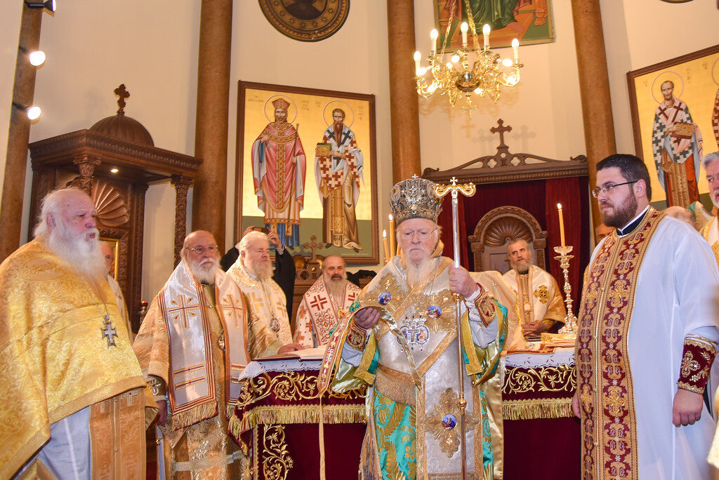 Πατριαρχική Θεία Λειτουργία τελέστηκε την Κυριακή 10 Νοεμβρίου 2019 στον Ιερό Μητροπολιτικό Ναό των Παμμεγίστων Ταξιαρχών Βρυξελλών, προεξαρχούσης της Α.Θ.Π. του Οικουμενικού Πατριάρχου κ. κ. Βαρθολομαίου, με συλλειτουργούς τον Σεβασμιώτατο Μητροπολίτη Βελγίου και Έξαρχο Κάτω Χωρών και Λουξεμβούργου κ. Αθηναγόρα, τους Σεβασμιωτάτους Μητροπολίτες Μαντινείας και Κυνουρίας κ. Αλέξανδρο, Προικονήσσου κ. Ιωσήφ, Κυδωνίας και Αποκωρώνου κ. Δαμασκηνός, Ελβετίας κ. Μάξιμος, οι Πανιερώτατοι Μητροπολίτης Αχαϊας κ. Αθανάσιος και Αρχιεπίσκοπος Τελμησού Ιώβ, οι Θεοφιλέστατοι Επίσκοποι Δοσίθεος του Πατριαρχείου Γεωργίας, Λεύκης κ. Ευμένιος, Μάρκος του Πατριαρχείου Ρουμανίας και Νεαπόλεως Πορφύριος της Εκκλησίας της Κύπρου.