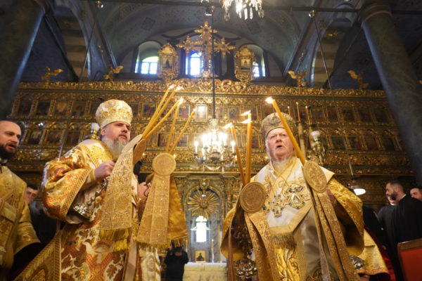 Η Α.Θ. Παναγιότης ο Οικουμενικός Πατριάρχης κ.κ Βαρθολομαίος προέστη της Θείας Λειτουργίας, συλλειτουργούντος του Μακαριωτάτου Μητροπολίτου Κιέβου και πάσης Ουκρανίας κ. Επιφανίου.