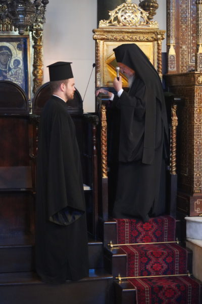 Μετά το Ευαγγέλιο, ο Αρχιγραμματέας της Αγίας και Ιεράς Συνόδου Πανοσιολ. Αρχιμανδρίτης κ. Βοσπόριος, ανέγνωσε τον Κατηχητήριο Λόγο του Οικουμενικού Πατριάρχη για την έναρξη της Αγίας και Μεγάλης Τεσσαρακοστής.
