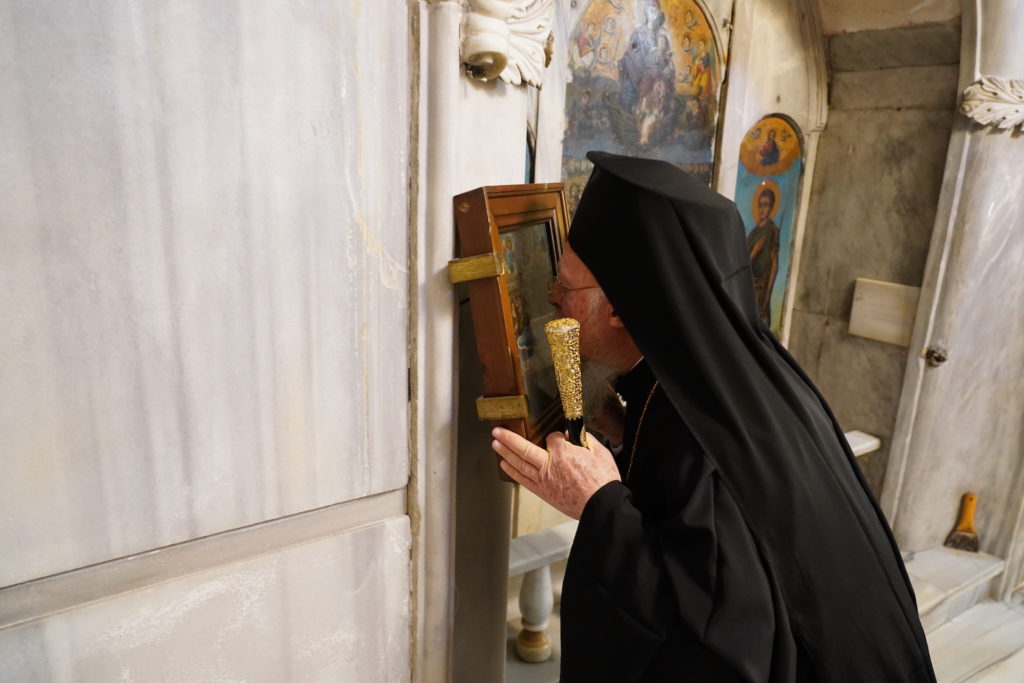 Αμέσως μετά, ο Παναγιώτατος τέλεσε Τρισάγιο στον Τάφο του αοιδίμου προκατόχου του, Πατριάρχου Δημητρίου, μνημονεύοντας όλους τους Πατριάρχες, Ιεράρχες και Μ. Ευεργέτες του Γένους που αναπαύονται στον αυλόγυρο της Μονής. Στη συνέχεια μετέβη στο παρακείμενο Β΄ Κοιμητήριο της Μονής όπου τέλεσε Τρισάγιο υπέρ αναπαύσεως των ψυχών, «των πατέρων και αδελφών ημών, ων τα ονόματα Κύριος γιγνώσκει».