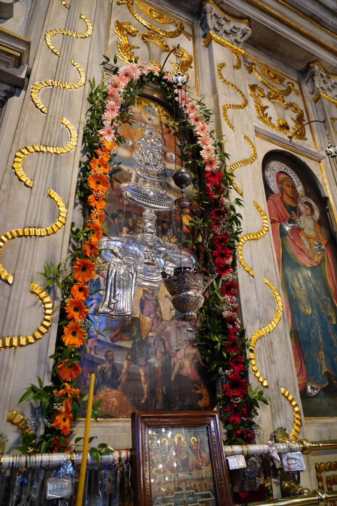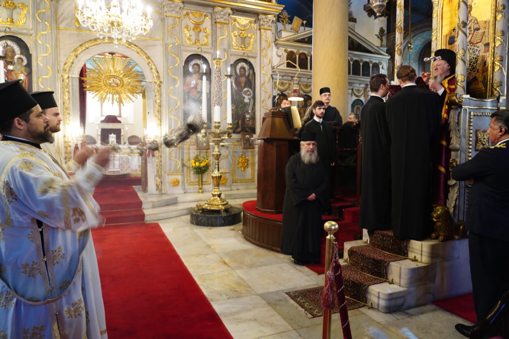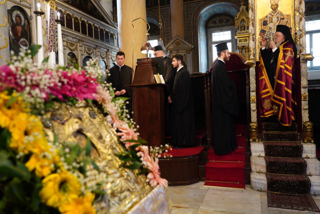 Εκκλησιάστηκαν οι Αρχιερείς Σεβ. Γέρων Πριγκηποννήσων κ. Δημήτριος, Ανθηδώνος κ. Νεκτάριος, Επίτροπος του Παναγίου Τάφου στην Πόλη, Σαράντα Εκκλησιών κ. Ανδρέας και ο Θεοφιλ. Δορυλαίου κ. Δαμασκηνός, η Ευγεν. Πρόξενος κ. Δανάη Βασιλάκη, εκ προσώπου της Γενικής Πρόξενου της Ελλάδος στην Πόλη, Αγιορείτες Πατέρες, κληρικοί, μοναχοί, Άρχοντες Οφφικιάλιοι της Μ.τ.Χ.Ε., Καθηγητές και μαθητές της Αθωνιάδας Εκκλησιαστικής Ακαδημίας του Αγίου Όρους, και πλήθος πιστών από την Πόλη και προσκυνητών από το εξωτερικό.