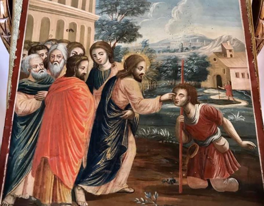 Η ΚΥΡΙΑΚΗ ΤΟΥ ΤΥΦΛΟΥ σε Ιερά Εικόνα του Πανσέπτου Πατριαρχικού Ναού Αγίου Γεωργίου στο Φανάρι της Κωνσταντινουπόλεως. Ο Ιησούς Χριστός θεραπεύει τον εκ γενετής τυφλόν.