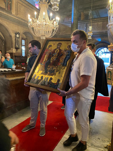Στο Νιχώρι του Βοσπόρου και στον Ι. Ναό της Παναγίας της Κουμαριώτισσας πραγματοποιήθηκε χθες, Κυριακή 23 Αυγούστου 2020, η λιτάνευση της εικόνας της Παναγίας, επί τη Αποδόσει της εορτής της Κοιμήσεως της Θεοτόκου. Στην Ακολουθία του Εσπερινού χοροστάτησε ο Σεβ. Μητροπολίτης Ικονίου κ. Θεόληπτος, ο οποίος προέστη και της λιτάνευσης της ιεράς εικόνος.