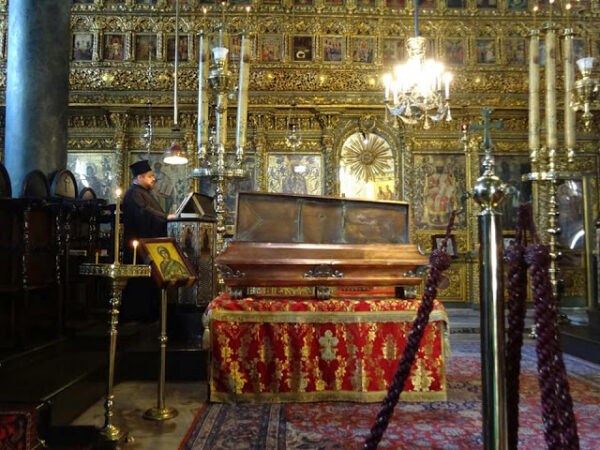 Με την καθιερωμένη τάξη γιορτάστηκε χθες, Σάββατο 1 Αυγούστου 2020, στον Πατριαρχικό Ναό του Αγίου Γεωργίου στο Φανάρι η μνήμη της Αγίας Σολομονής, μητέρας των επτά Μακκαβαίων παίδων, της οποίας το λείψανο φυλάσσεται στο νότιο τοίχο του Πατριαρχικού Ναού.