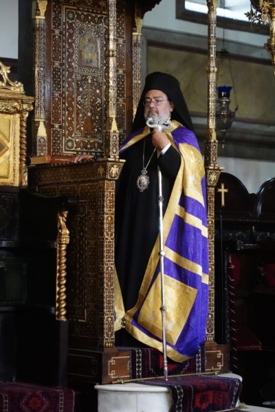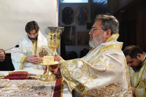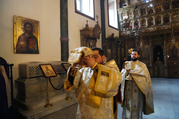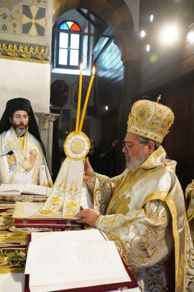 Της Θείας Λειτουργίας προέστη ο Σεβασμιώτατος Μητροπολίτης Ικονίου κ. Θεόληπτος, και συλλειτούργησαν οι Σεβασμιώτατοι Μητροπολίτες Σαράντα Εκκλησιών κ. Ανδρέας και Προύσης κ. Ιωακείμ.