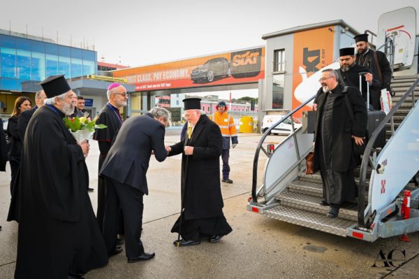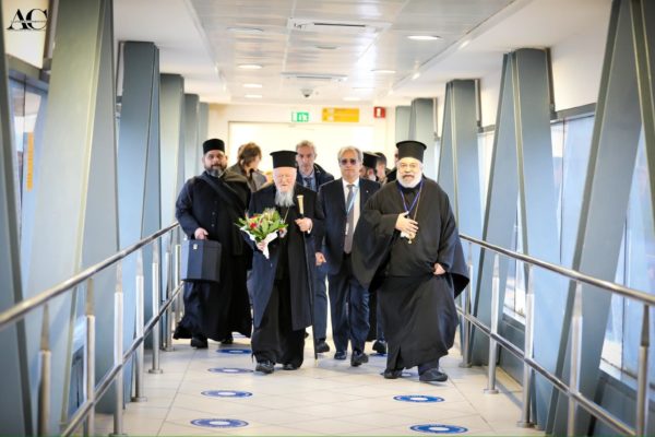 Κατά την άφιξη του στον αερολιμένα της πόλης τον Παναγιώτατο και τη συνοδεία του υποδέχθηκαν ο Μητροπολίτης Ιταλίας κ. Πολύκαρπος και εκπρόσωπος της ρωμαιοκαθολικής εκκλησίας.