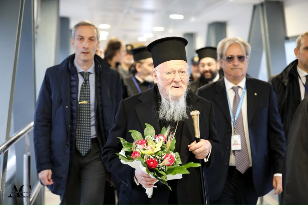 Κατά την άφιξη του στον αερολιμένα της πόλης τον Παναγιώτατο και τη συνοδεία του υποδέχθηκαν ο Μητροπολίτης Ιταλίας κ. Πολύκαρπος και εκπρόσωπος της ρωμαιοκαθολικής εκκλησίας.