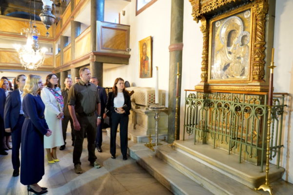 Προηγουμένως, η Πρώτη Κυρία της Ουκρανίας προσκύνησε στον Πάνσεπτο Πατριαρχικό Ναό, όπου ο ουκρανικής καταγωγής Ιερολ. Πατριαρχικός Διάκονος κ. Επιφάνιος Καμιάνοβιτς, ο οποίος εκτέλεσε χρέη διερμηνέως, την ενημέρωσε για την ιστορία και τα κειμήλια που φυλάσσονται σε αυτόν.