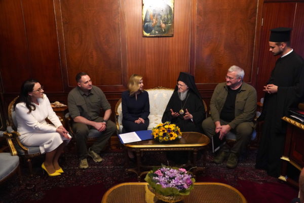 Ο Παναγιώτατος Οικουμενικός Πατριάρχης κ.κ. Βαρθολομαίος δέχθηκε σήμερα την κ. Olena Zelenska, σύζυγο του Προέδρου της Ουκρανίας κ. Βολοντιμίρ Ζελένσκι, η οποία συνοδευόταν από τον κ. Andriy Yermak, επικεφαλής του Γραφείου του κ. Προέδρου, την κ. Yulia Svyrydenko, πρώτη αναπληρώτρια Πρωθυπουργό της Ουκρανίας, τον κ. Αndrii Sybiha, αναπληρωτή επικεφαλής του Γραφείου του Προέδρου της Ουκρανίας, τον Πρέσβη της Ουκρανίας στην Άγκυρα κ. Vasyl Bodnar, και τον Γενικό Πρόξενο στην Πόλη κ. Roman Nedilskyi, στελέχη της Προεδρίας και συνεργάτες της.