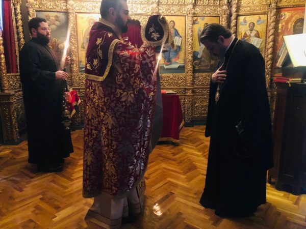 Επί τη εορτή της συνάξεως της Υπεραγίας Θεοτόκου, τελέστηκε σήμερα, Κυριακή μετά την Χριστού Γέννηση, 26 Δεκεμβρίου 2021, στο παρακείμενο της Αίθουσας Τελετών της Σχολής παρεκκλήσιο της Παναγίας της Καμαριωτίσσης ο Όρθρος και η Θεία Λειτουργία, χοροστατούντος από του παραθρονίου του Καθηγουμένου, Θεοφιλεστάτου Επισκόπου Αραβισσού κ. Κασσιανού.