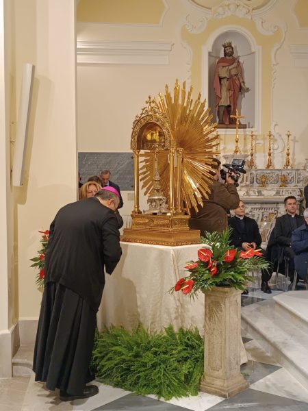 Το απόγευμα της ίδιας ημέρας, ο Παναγιώτατος επισκέφθηκε το Benevento όπου προσκύνησε το λείψανο του Αγίου Βαρθολομαίου στον ομώνυμο Ναό και στη συνέχεια την κωμόπολη Ariano Irpino, γενέτειρα του Θεοφιλεστάτου Επισκόπου των εν τη Πόλει ΡΚαθολικών Massimiliano Palinuro, ο οποίος συνόδευσε τον Πατριάρχη στην επίσκεψή του αυτή στη Νεάπολη.