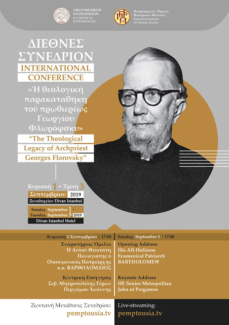 Διεθνές Συνέδριο με θέμα “Η θεολογική παρακαταθήκη του πρωθιερέως Γεωργίου Φλωρόφσκυ” διοργανώνει το Οικουμενικό Πατριαρχείο, στην Πόλη, από την 1η έως και την 3η Σεπτεμβρίου 2019, με αφορμή την συμπλήρωση 40ετίας από της κοιμήσεώς του.