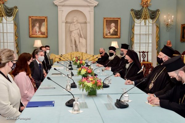 Νωρίτερα ο Οικουμενικός Πατριάρχης είχε συναντηθεί με τον Υπουργό Εξωτερικών των ΗΠΑ, Άντονι Μπλίνκεν, ο οποίος για ακόμη μια φορά προχώρησε στην επαναβεβαίωση ότι το άνοιγμα της Θεολογικής Σχολής της Χάλκης αποτελεί συνεχή προτεραιότητα της κυβέρνησης Μπάιντεν.