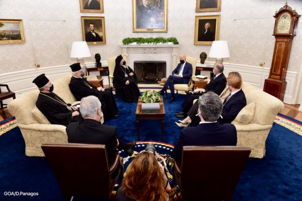 Deeply grateful to President @JoeBiden for our meeting in the Oval Office, where the Ecumenical Patriarch addressed the urgency of political leaders responding to the climate crisis, the distribution of Covid vaccines to developing nations, and the reopening of Halki Seminary. pic.twitter.com/PiZ5jCITsS