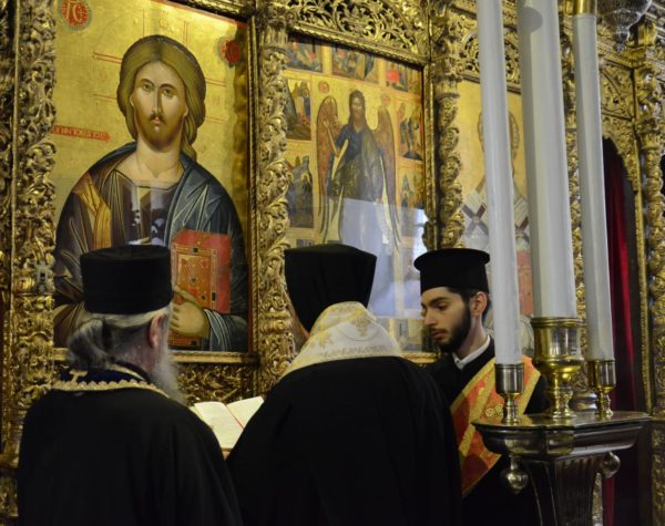 Ο Καθηγούμενος, μετά την ανάγνωση του τρισαγίου, επικαλέστηκε την ευχή του μακαριστού Σχολάρχου, η οποία ενισχύει και εμπνέει την ταπεινή διακονία μας στην Θεολογική Σχολή της Χάλκης και τόνισε ότι ο Σχολάρχης έγινε ο ίδιος μία ολοκληρωτική θυσία για τη Σχολή μας.