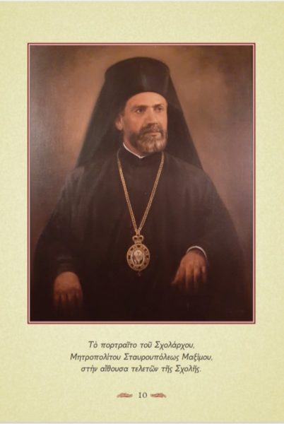 Ο μακαριστός Σχολάρχης, Μητροπολίτης Σταυρουπόλεως κυρός Μάξιμος, αποφοίτησε αριστούχος από τη Σχολή το 1944. Το 1951, μετά την πραγματοποίηση ανωτέρων σπουδών στο Πανεπιστήμιο Λουβαίν του Βελγίου, διορίστηκε Καθηγητής Φιλοσοφίας της Σχολής και το 1955 Σχολάρχης. Στη θέση αυτή παρέμεινε μέχρι τον θάνατό του, το 1991. Κατά τη διάρκεια της μακράς Σχολαρχίας του εβίωσε την οδυνηρή και παντελώς άδικη και ακατανόητη απόφαση της αναστολής της λειτουργίας του ακαδημαϊκού τμήματος της Σχολής, το 1971. Παρέμεινε όμως στη Σχολή ως άγρυπνος φρουρός και φύλακάς με πλήρη αυτοθυσία και αυταπάρνηση περιμένοντας την επαναλειτουργία της. Μέχρι τέλους δεν έπαυσε να εργάζεται αδιαλείπτως ώστε να διατηρεί την Σχολή πάντοτε σε άριστη κατάσταση, έτοιμη να υποδεχθεί και πάλι νέους φοιτητές.