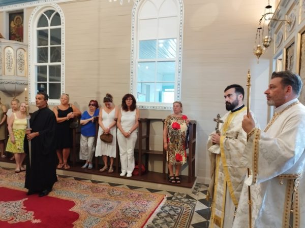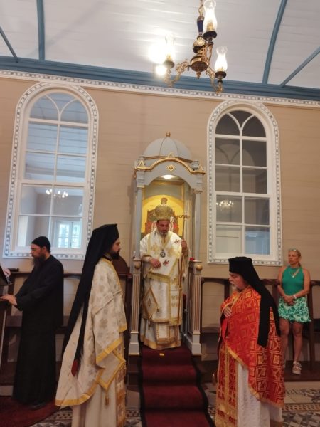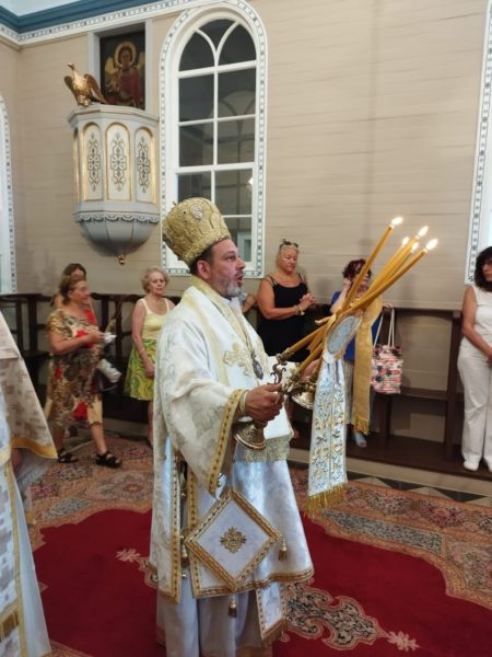 Εκκλησιάστηκαν ο Πανοσιολογιώτατος Αρχιμ. Πορφύριος Προδρομίτης, Καθηγούμενος της Ι. Πατριαρχικής Μονής Τιμίου Προδρόμου Σκήτης Βερροίας με μέλη της περί αυτόν αδελφότητος, η Πρόεδρος της Κοινότητος Αγίου Νικολάου Χάλκης κ. Ολυμπία Παναγιωτίδου, καθώς και πολυπληθείς προσκυνητές από τα Πριγκηπόννησα και την Πόλη.