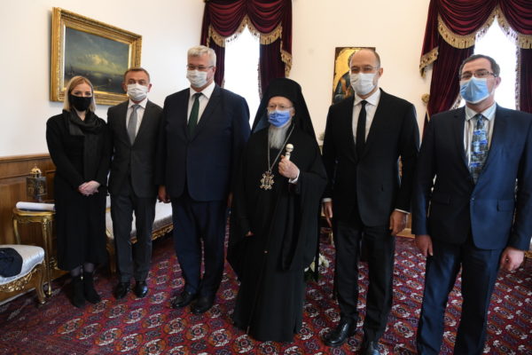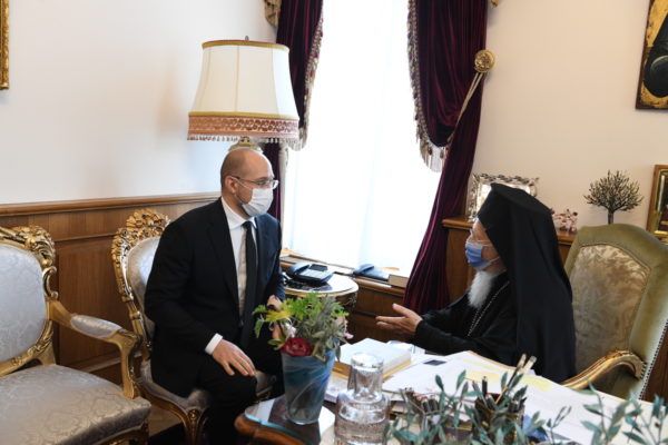 Στη συνέχεια ο Οικουμενικός Πατριάρχης δέχθηκε σε ιδιαίτερη ακρόαση τον Εξοχ. Πρωθυπουργό της Ουκρανίας κ. Denys Shmyhal, μαζί με την τιμία συνοδεία του. Ο κ. Πρωθυπουργός, σε σύντομη ομιλία του, διαβίβασε τον εγκάρδιο χαιρετισμό του Προέδρου της Ουκρανίας και μίλησε με θερμούς λόγους για το πρόσωπο του Πατριάρχου και για τον θεσμό του Οικουμενικού Πατριαρχείου.