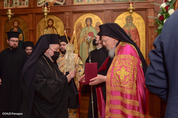Εὐδοκίᾳ καί χάριτι τοῦ πανοικτίρμονος Θεοῦ, τοῦ ἀεί δαψιλεύοντος τῇ Ἁγίᾳ Αύτοῦ Ἐκκλησίᾳ καί τῷ Γένει ἡμῶν σωτήρια δωρήματα καί πᾶσαν δόσιν ἀγαθήν, εὑρισκόμεθα, μετά τῆς τιμίας ἡμῶν συνοδείας, ἐν τῷ μέσῳ ὑμῶν. Χαιρόμεθα διά τήν συνάντησιν πρόσωπον πρός πρόσωπον, διά τήν πανηγυρικήν Δοξολογίαν, διά τήν φιλοξενίαν, διά τόν εἰλικρινῆ σεβασμόν σας πρός τό ταπεινόν ἡμῶν πρόσωπον, ὁ ὁποῖος ἀπευθύνεται πάντοτε πρός τό Οἰκουμενικόν Πατριαρχεῖον, τόν ὕπατον θεσμόν τῆς Ὀρθοδοξίας καί τοῦ Γένους.
