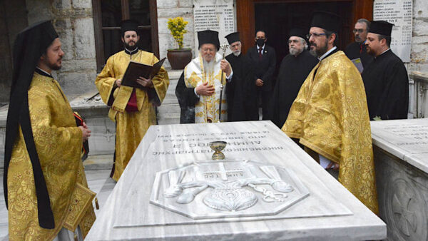 Ο Παναγιώτατος, το απόγευμα, μετέβη στην Ι. Μονή Βαλουκλή και τέλεσε Τρισάγιο στον τάφο του αμέσου προκατόχου Του αοιδίμου Πατριάρχη Δημητρίου.