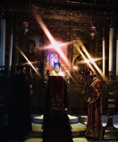 Σε κατανυκτική ατμόσφαιρα τελέστηκε το Εσπέρας της Αγίας και Μεγάλης Πέμπτης (29/04/2021) στο ναΰδριο της Θεολογικής Σχολής της Χάλκης η Ακολουθία των Αγίων Παθών του Κυρίου (Όρθρος Μεγάλης Παρασκευής), χοροστατούντος του Καθηγουμένου, Θεοφιλεστάτου Επισκόπου Αραβισσού κ. Κασσιανού, κεκλεισμένων των θυρών λόγω των ισχυόντων περιορισμών για την προστασία της δημόσιας υγείας.