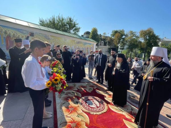 Δοξολογία τελέστηκε το πρωί του Σαββάτου στον Χρυσότρουλο Ιερό Καθεδρικό Ναό του Αγίου Αρχαγγέλου Μιχαήλ στο Κίεβο για την άφιξη του Παναγιωτάτου Οικουμενικού Πατριάρχου κ.κ. Βαρθολομαίου στην Ουκρανία. Τον Παναγιώτατο υποδέχτηκε ο Μακαριώτατος Μητροπολίτης Κιέβου και πάσης Ουκρανίας κ. Επιφάνιος και ο κλήρος της Αυτοκεφάλου Ουκρανικής Εκκλησίας.