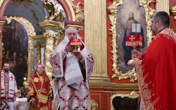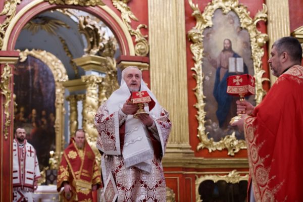 Σημειώνεται ότι ο Ναός είναι κτίσμα του 18ου αιώνος και αποτελεί ιστορικό μνημείο για το σύγχρονο Κίεβο. Μετά τον Αγιασμό ακολούθησε Αρχιερατικό Συλλείτουργο, στο οποίο συλλειτούργησαν ο Σεβ. Αρχιεπίσκοπος Τσερνίχιβ και Νύζιν κ. Ευστράτιος και ο Θεοφ. Επίσκοπος Κομάνων κ. Μιχαήλ, Έξαρχος εν Ουκρανία.