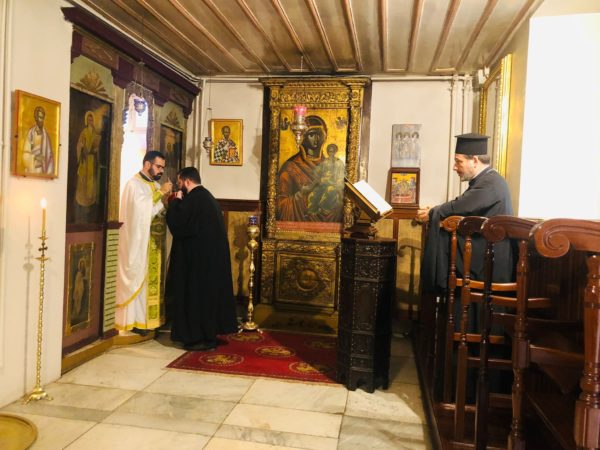 Τελέστηκε σήμερα, Κυριακή 10 Οκτωβρίου 2021, στο ευρισκόμενο στον νάρθηκα του ναϋδρίου της Σχολής παρεκκλήσιο του Αγίου Γερμανού, ο Όρθρος και η Θεία Λειτουργία, χοροστατούντος του Καθηγουμένου, Θεοφιλεστάτου Επισκόπου Αραβισσού κ. Κασσιανού.