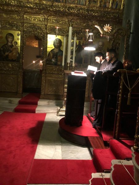 Στο ναΰδριο της Θεολογικής Σχολής τελέστηκε χθες το εσπέρας ο Αναστάσιμος Όρθρος και η Θεία Λειτουργία της Κυριακής, ιερουργούντος του Καθηγουμένου, Θεοφιλεστάτου Επισκόπου Αραβισσού κ. Κασσιανού.
