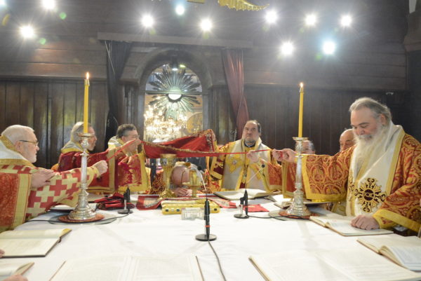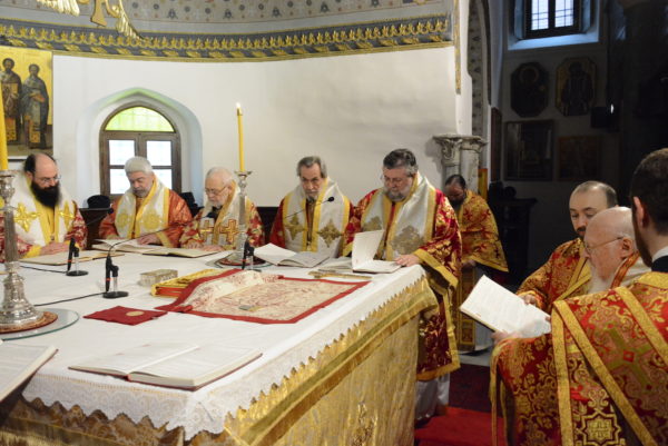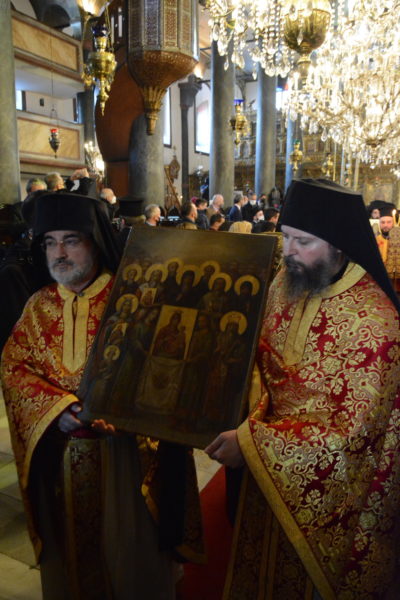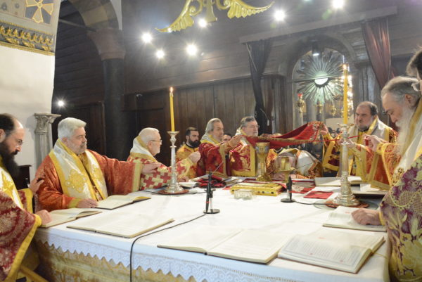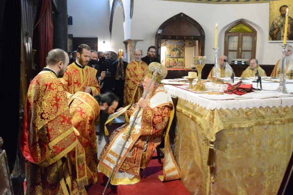 Της Θείας Λειτουργίας προεξήρχε ο Παναγιώτατος Οικουμενικός Πατριάρχης κ.κ. Βαρθολομαίος, συμπαραστατούμενος από τους Σεβ. Ιεράρχες Γέροντα Πριγκηποννήσων κ. Δημήτριο, Ανθηδώνος κ. Νεκτάριο, Επίτροπο του Παναγίου Τάφου στην Πόλη, Σεβαστείας κ. Σεραφείμ, Μυριοφύτου και Περιστάσεως κ. Ειρηναίο, Μύρων κ. Χρυσόστομο, Ειρηνουπόλεως κ. Νίκανδρο, Ιταλίας κ. Πολύκαρπο, Αδριανουπόλεως κ. Αμφιλόχιο, Πέτρας και Χεροννήσου κ. Γεράσιμο και Σαράντα Εκκλησιών κ. Ανδρέα. Κατά τη διάρκειά της τελέστηκε η εις Διάκονον χειροτονία του Μοναχού κ. Βαρνάβα, από την Αδελφότητα της Ιεράς Πατριαρχικής και Σταυροπηγιακής Μονής Τιμίου Προδρόμου Έσσεξ.