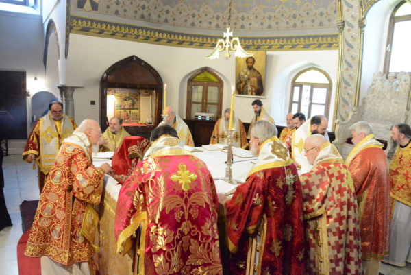 Στο τέλος της Θείας Λειτουργίας, ο Παναγιώτατος Οικουμενικός Πατριάρχης, με τους συλλειτουργούντες Αρχιερείς, τέλεσαν το καθιερωμένο Τρισάγιο υπέρ αναπαύσεως των ψυχών όλων «των υπέρ της Ορθοδόξου ημών πίστεως αγωνισαμένων και τελειωθέντων εν αυτή».
