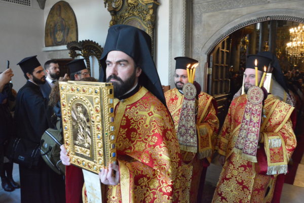 Ακολούθησε η λιτανευτική πομπή των Ιερών Εικόνων, στον αυλόγυρο του Πατριαρχείου, κατά την οποία ο Οικουμενικός Πατριάρχης ευλόγησε τους πιστούς.
