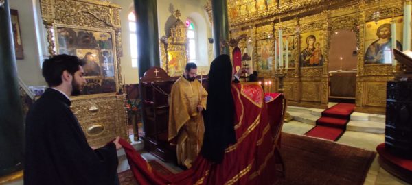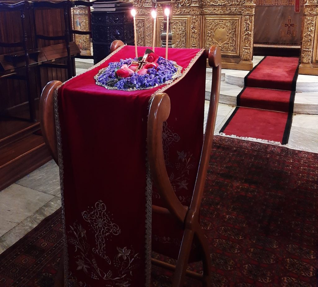 Τελέστηκε σήμερα (4.4.2021), Κυριακή της Σταυροπροσκυνήσεως, στο ναΰδριο της Θεολογικής Σχολής της Χάλκης ο Όρθρος και η Θεία Λειτουργία του Μ. Βασιλείου, χοροστατούντος του Καθηγουμένου, Θεοφιλεστάτου Επισκόπου Αραβισσού κ. Κασσιανού.