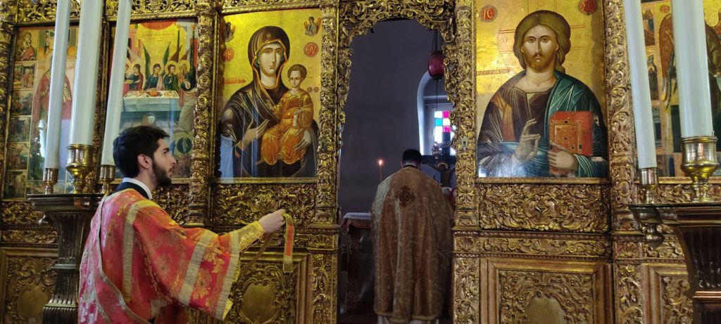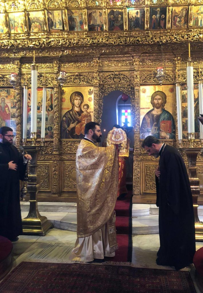 Tελέστηκε στο ναΰδριο της Θεολογικής Σχολής της Χάλκης ο Όρθρος και η Θεία Λειτουργία, χοροστατούντος από του παραθρονίου του Καθηγουμένου, Θεοφιλεστάτου Επισκόπου Αραβισσού κ. Κασσιανού, την Κυριακή της Τυρινής 14 Μαρτίου 2021