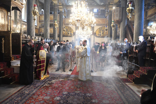 Εκκλησιάστηκαν η Γενική Πρόξενος της Ελλάδος στη Σμύρνη κ. Αργυρώ Παπούλια, με τον συζυγό της κ. Νικόλαο Στεφάνου, και πλήθος πιστών από την Πόλη και το εξωτερικό.