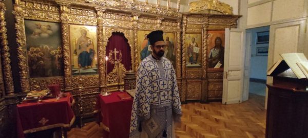Στο παρακείμενο της Αίθουσας Τελετών της Σχολής παρεκκλήσιο της Παναγίας της Καμαριωτίσσης τελέστηκε σήμερα, Κυριακή των Δέκα Λεπρών, 16 Ιανουαρίου 2022, εορτή της προσκυνήσεως της Τιμίας Αλύσεως του Αγίου Αποστόλου Πέτρου, ο Αναστάσιμος Όρθρος και η Θεία Λειτουργία.