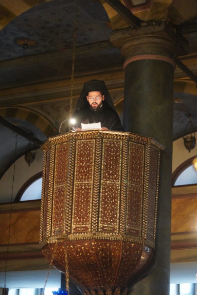 Τον θείο λόγο κήρυξε, κατά την τάξη, ο Πανοσιολ. Διάκονος κ. Οικουμένιος Αμανατίδης, Υπογραμματεύς της Αγίας και Ιεράς Συνόδου.