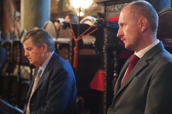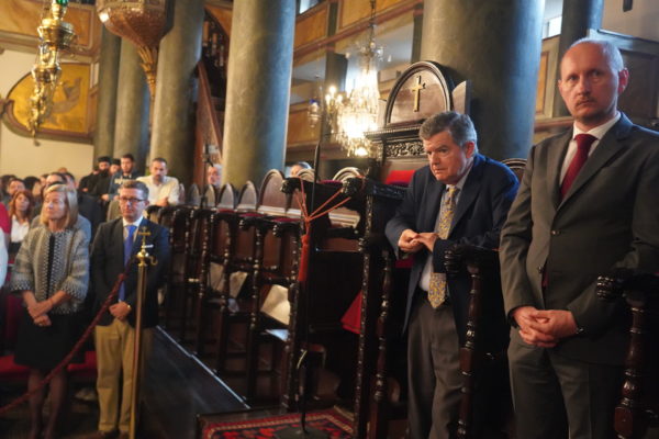 Εκκλησιάστηκαν μοναχοί του Αγίου Όρους, Άρχοντες Οφφικιάλιοι της Μ.τ.Χ.Ε. υπό τον Πρόεδρο της Αδελφότητός τους Άρχοντα Έξαρχο κ. Αθανάσιο Μαρτίνο, οι Γενικοί Πρόξενοι της Ελλάδος και της Ουκρανίας στην Πόλη, Εξοχ. Πρέσβυς κ. Κωνσταντίνος Κούτρας και κ. Roman Nedilskyi, ο Δήμαρχος Χανίων κ. Παναγιώτης Σημανδηράκης, με στελέχη του Δήμου, Αντιπροσωπεία του Παραρτήματος AHEPA Βάρης, Βούλας και Βουλιαγμένης, και πλήθος πιστών από την Πόλη και το εξωτερικό.