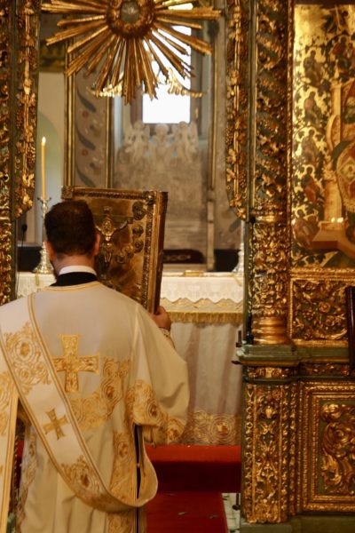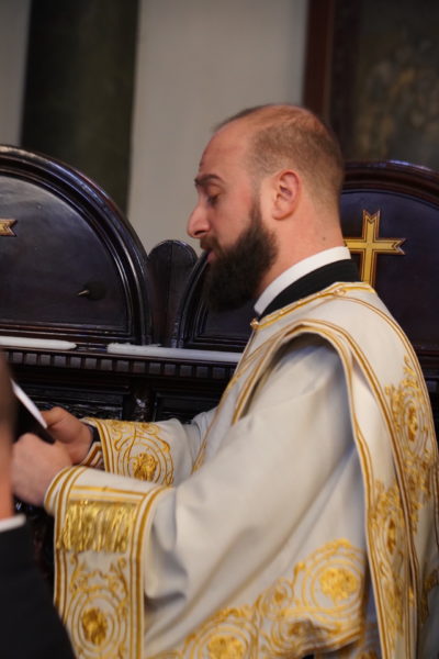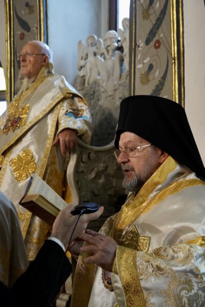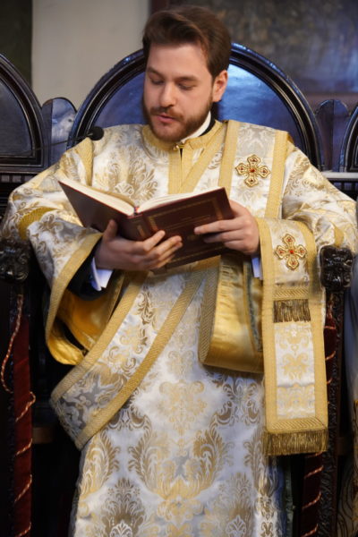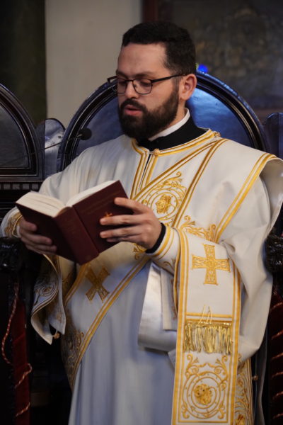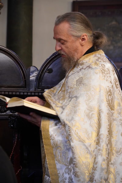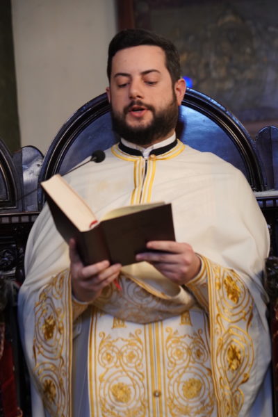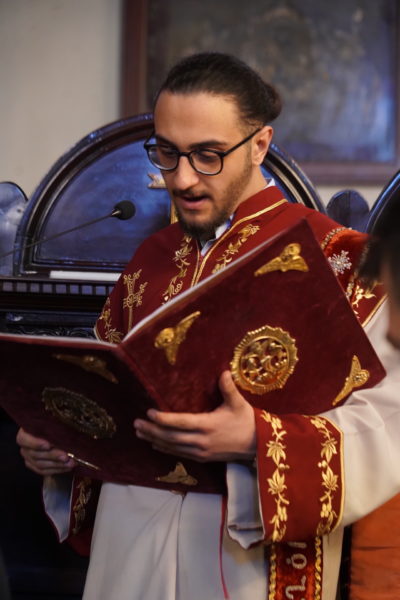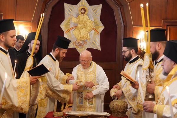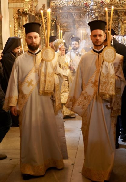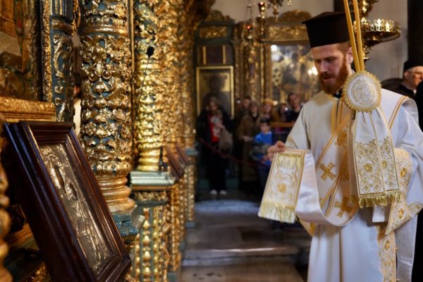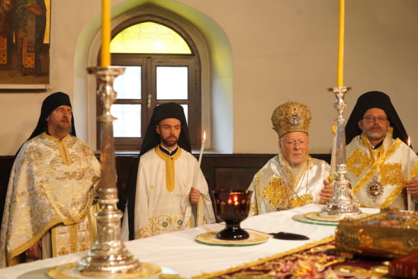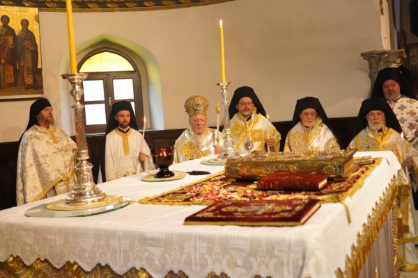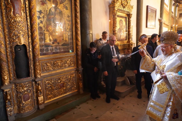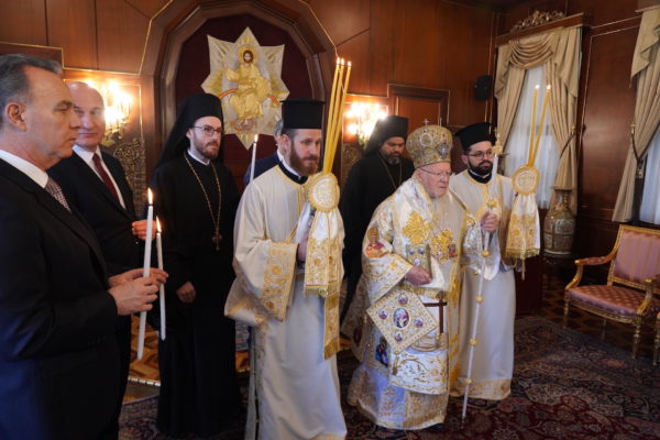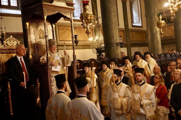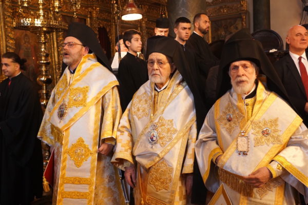 Ο Παναγιώτατος Οικουμενικός Πατριάρχης κ.κ. Βαρθολομαίος, αφού ενδύθηκε με τα Αρχιερατικά άμφια στην Αίθουσα του Θρόνου, περιστοιχούμενος από τους Αρχιερείς Σεβασμιωτάτους Μητροπολίτες Φιλαδελφείας κ. Μελίτωνα, Μυριοφύτου και Περιστάσεως κ. Ειρηναίο, Μύρων κ. Χρυσόστομο, Ικονίου κ. Θεόληπτο, Σελευκείας κ. Θεόδωρο, και τον Θεοφιλέστατο Επίσκοπο Τιβεριουπόλεως κ. Τύχωνα, Ιεράρχη της Εκκλησίας της Βουλγαρίας, καθώς και από τους κληρικούς της Πατριαρχικής Αυλής, κατήλθε στον Πατριαρχικό Ναό και προέστη του Εσπερινού.