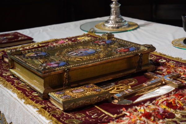 Ο Πατριάρχης, από το Σύνθρονο, ανέγνωσε το Ιερό Ευαγγέλιο στα Ελληνικά και ακολούθως αυτό διαβάστηκε, από Ιεράρχες και κληρικούς του Θρόνου, καθώς και εκπροσώπους άλλων χριστιανικών κοινοτήτων της Πόλεως, σε διάφορες γλώσσες.