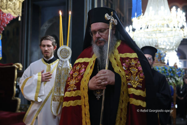 Μετά την Απόλυση, ο Παναγιώτατος διένειμε στο πολυπληθές εκκλησίασμα κόκκινα πασχαλινά αυγά.