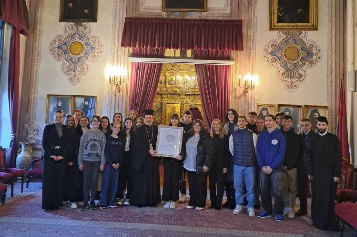 Οι μαθητές, οι οποίοι συμμετέχουν στο εκπαιδευτικό πρόγραμμα του Πατριαρχικού Ιδρύματος “Παλαιογραφία, το ταξίδι της γραφής”, με έμπνευση από χάρτες της Θεολογικής Σχολής της Χάλκης που παρουσιάστηκαν στη Θεσσαλονίκη (ΔΕΘ, Σεπτέμβριος 2023), αφού εκκλησιάστηκαν στο ναΰδριο της Σχολής, έγιναν δεκτοί από τον Καθηγούμενο, Θεοφιλέστατο Επίσκοπο Αραβισσού κ. Κασσιανό, στο Μέγα Συνοδικό, ο οποίος τους καλωσόρισε και τους απηύθυνε πατρικές συμβουλές για τις σπουδές και εν γένει για τη ζωή τους, ενώ τόνισε την έντονη και ελπιδοφόρα δραστηριότητα του Πατριαρχικού Ιδρύματος στον τομέα των εκπαιδευτικών προγραμμάτων κατά τα τελευταία έτη.