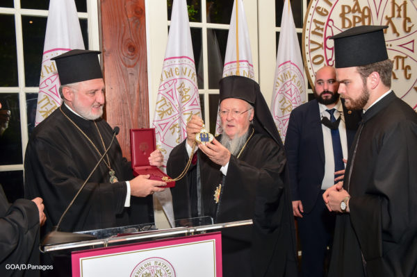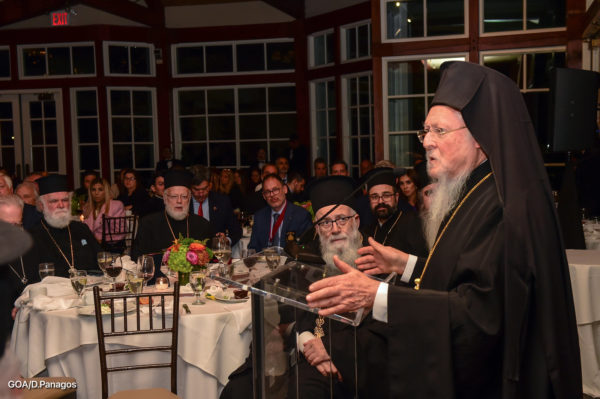 Χθες το βράδυ ο Αρχιεπίσκοπος Αμερικής κ. Ελπιδοφόρος παρέθεσε δείπνο προς τιμήν του Οικουμενικού Πατριάρχη με αφορμή τη συμπλήρωση 30 ετών από την ημέρα της ενθρονίσεως του. Όπως ανέφερε στον χαιρετισμού του ο κ. Ελπιδοφόρος “για όλους εμάς στην Αρχιεπισκοπή, η σύνδεσή μας μαζί σας για περισσότερο από μια γενιά έχει ενισχυθεί από τις επισκέψεις σας στις Ηνωμένες Πολιτείες. Δεν έχετε διστάσει να ταξιδέψετε για να γνωρίσετε το ποίμνιο της Αμερικής. Η απάντησή μας ήταν πάντα χαρά και αγαλλίαση, αλλά ως Αρχιεπίσκοπος, αισθάνομαι ότι πρέπει να τιμήσουμε περαιτέρω την Παναγιότητά σας — διαμορφώνοντας ένα τεράστιο εκπαιδευτικό πρόγραμμα για την ιστορία, το νόημα και το όραμα της Μητέρας Εκκλησίας της Κωνσταντινούπολης”.