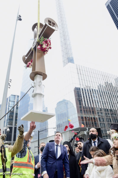 Νωρίτερα, σε κλίμα βαθιάς συγκίνησης πραγματοποιήθηκαν τα θυρανοίξια του ιερού ναού του Αγίου Νικολάου στο Σημείο Μηδέν στο Μανχάταν από τον Οικουμενικό Πατριάρχη Βαρθολομαίο. Η τελετή ξεκίνησε με την ανύψωση του σταυρού.